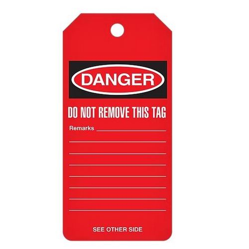OSHA Danger Do Not Operate (red) workplace safety tags supplied in a continuous roll provide an easy and convenient way to transport and distribute your tags. Made from 10-mil Duraply All-Weather synthetic polytag stock, and perforated to be easily dispensed from the roll. Duraply tags are a great choice for indoor or limited use outdoor applications and can be easily written on with pen, pencil or marker. Tag size 3" x 6.25" with a 0.375" hole.
