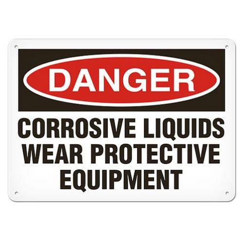 Incom, SA1011A, Aluminum Safety Sign "Danger Corrosive Liquids Wear Protective Equipment"