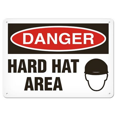 Incom, SA1016P, Semi-Rigid Plastic Safety Sign "Danger Hard Hat Area"