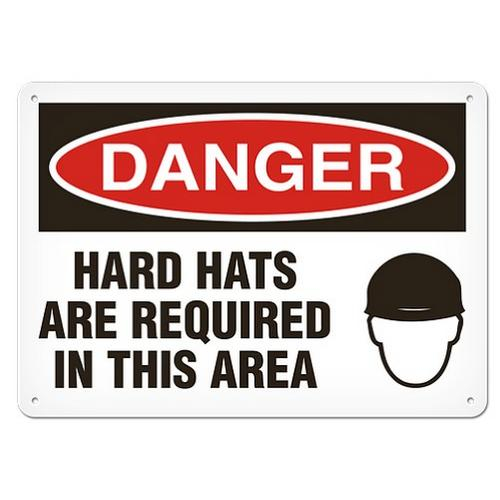 Incom, SA1017A, Aluminum Safety Sign "Danger Hard Hats are Required in this Area"