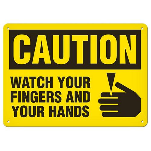 Incom, SA2006AL, Sign Caution "Watch Your Fingers and Your Hands", 7" x 10", Aluminum with UV Lamination
