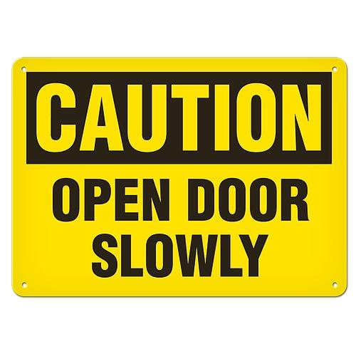 Incom, SA2026AL, Caution Sign "Open Door Slowly" 7" x 10" Aluminum with UV Lamination