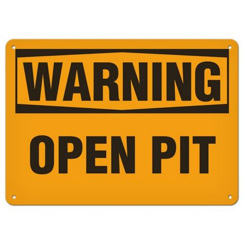 Incom, SA3045V, Sign Warning "Open Pit", 7" x 10", Adhesive Vinyl