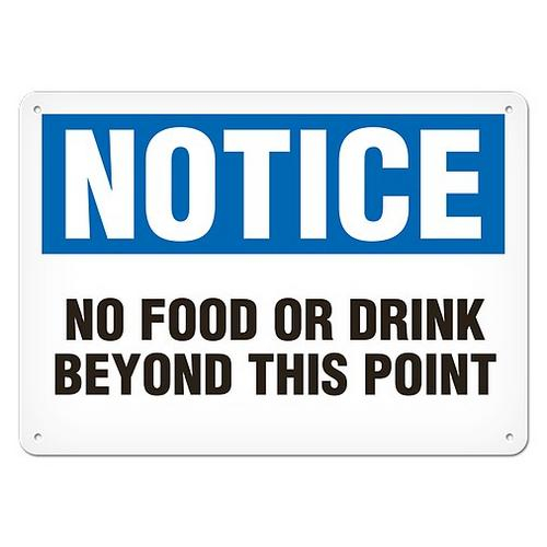 Incom, SA4009P, Semi-Rigid Plastic Sign "Notice - No Food Or Drink Beyond This Point", 7" x 10"