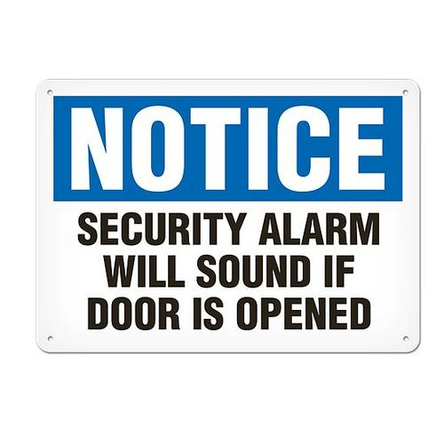 Sign Notice - "Security Alarm Will Sound if Door is Opened", Aluminum with UV Lamination, 7" x 10"