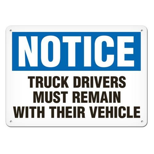 Incom, SA4021V, Sign Notice "Truck Drivers Must Remain with Their Vehicle", 7" x 10", Adhesive Vinyl