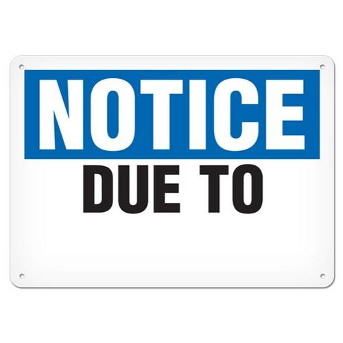 Incom, SA4031V, Sign Notice "Due To", 7" x 10", Adhesive Vinyl