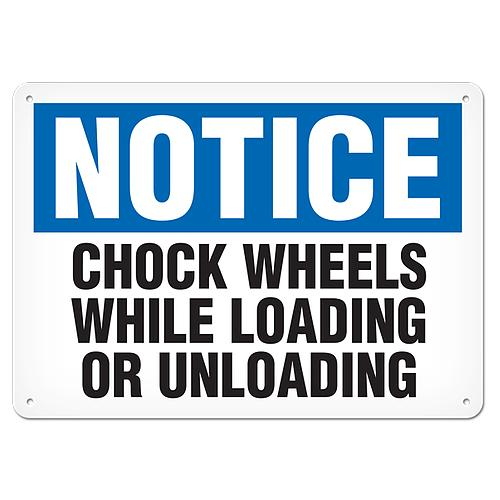 Incom, SA4035AL, 7" x 10" Aluminum with UV Lamination Sign "Notice - Chock Wheels While Loading Or Unloading"