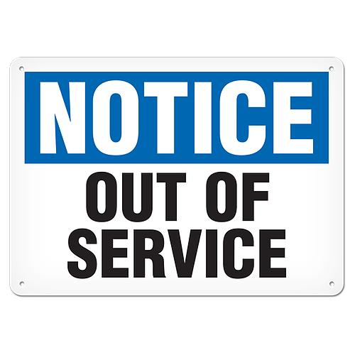 Incom, SA4046P, 7" x 10" Semi-Rigid Plastic Sign "NOTICE - Out Of Service"
