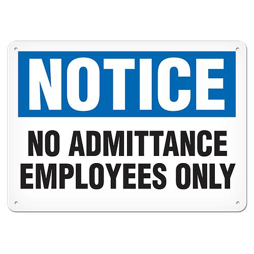 Incom, SA4047A, 7" x 10" Aluminum Sign "NOTICE - No Admittance Employees Only"