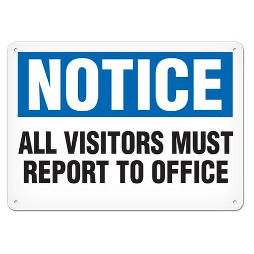 Incom, SA4049P, Sign Notice "All Visitors Must Report to Office", 7" x 10", Semi-Rigid Plastic