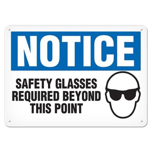 Incom, SA4050A, Sign Notice "Safety Glasses Required Beyond This Point", 7" x 10", Aluminum