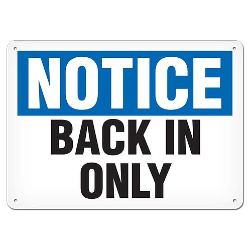 Incom, SA4059P, 7" x 10" Semi-Rigid Plastic Sign "Notice - Back In Only"
