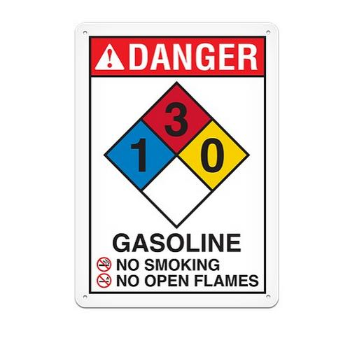 Sign Notice - "Danger Gasoline", Aluminum, 7" x 10"