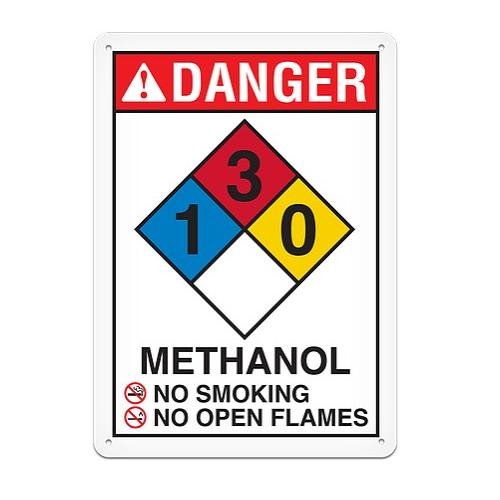 Sign Notice - "Danger Methanol", Aluminum with UV Lamination, 7" x 10"
