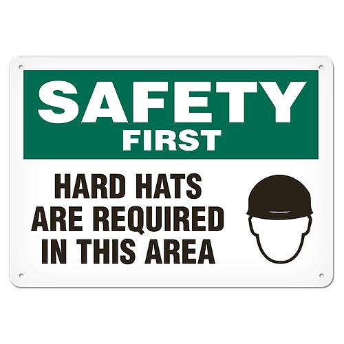 Incom, SA5011P, 7" x 10" Semi-Rigid Plastic Sign "Safety First - Hard Hats Required in This Area"