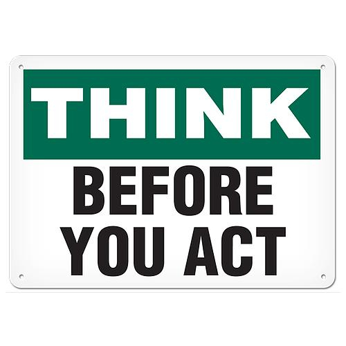 Incom, SA5038A, 7" x 10" Aluminum Sign "Think - Before You Act"