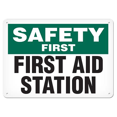 Incom, SA5047AL, 7" x 10" Aluminum with UV Lamination Sign "Safety First - First Aid Station"