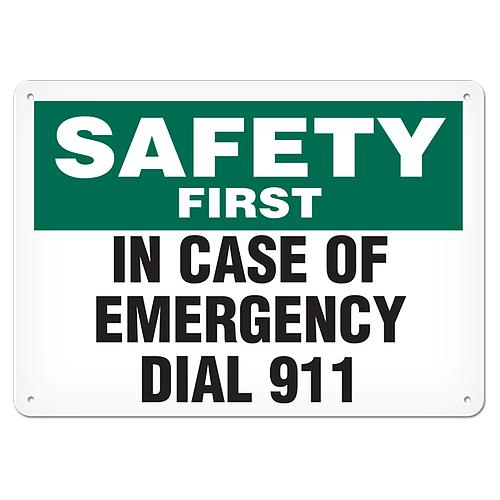 Incom, SA5049P, 7" x 10" Semi-Rigid Plastic Sign "Safety First - In Case Of Emergency Dial 911"