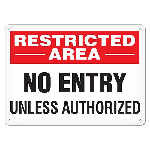 Incom, SA5067P, 7" x 10" Semi-Rigid Plastic Sign "Restricted Area - No Entry Unless Authorized"