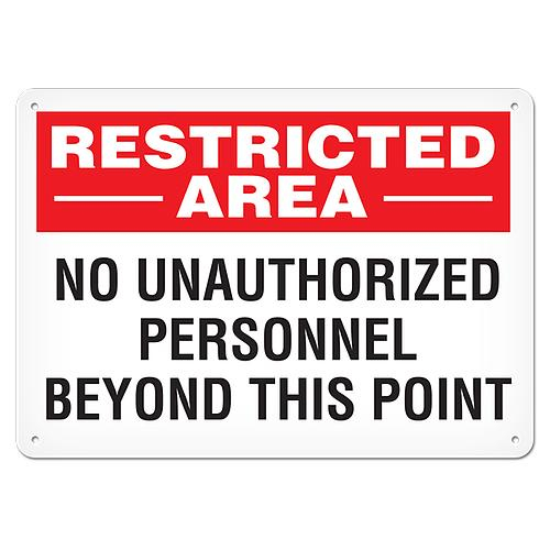Incom, SA5068AL, 7" x 10" Aluminum with UV Lamination Sign "Restricted Area - No Unauthorized Personnel Beyond This Point"