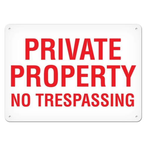 Incom, SA5071A, Sign "Private Property No Trespassing", 7" x 10", Aluminum