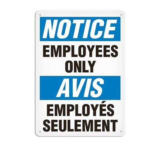 Incom, SA6021V, Notice (Bilingual) Safety Sign: "Employees Only" 7" x 10" Adhesive VynMark
