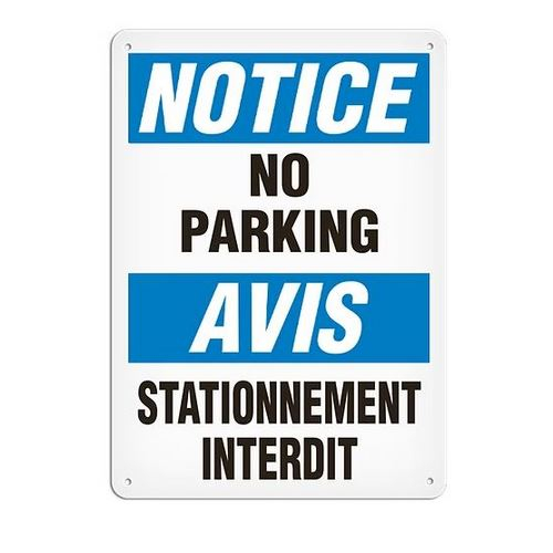 Incom, SA6023A, Notice (Bilingual) Safety Sign: "No Parking" 7" x 10" Aluminum