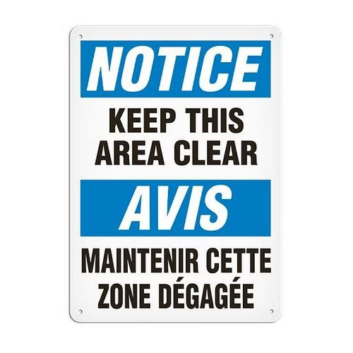 Incom, SA6024AL, Notice (Bilingual) Safety Sign: "Keep This Area Clear"7" x 10" Aluminum + UV Lamination