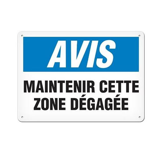 Incom, SAF4006P, AVIS Safety Sign: "Maintenir Cette Zone Degagee" 7" x 10" Rigid HDPE Plastic