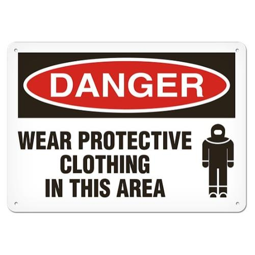 Incom, SC1022AL, Sign Danger "Wear Protective Clothing in This Area", 14" x 20", Aluminum with UV Lamination