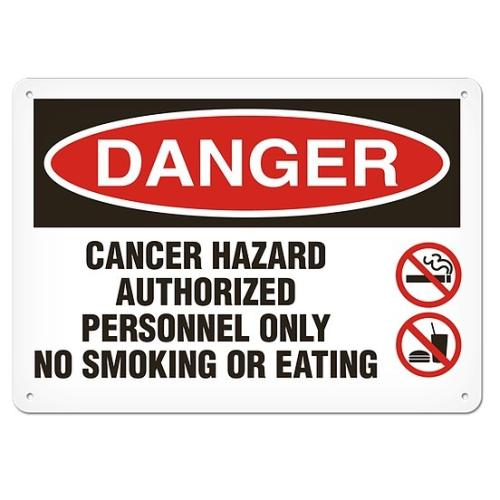 Incom, SC1076A, Sign Danger "Cancer Hazard Authorized Personnel Only no Smoking or Eating", 14" x 20"