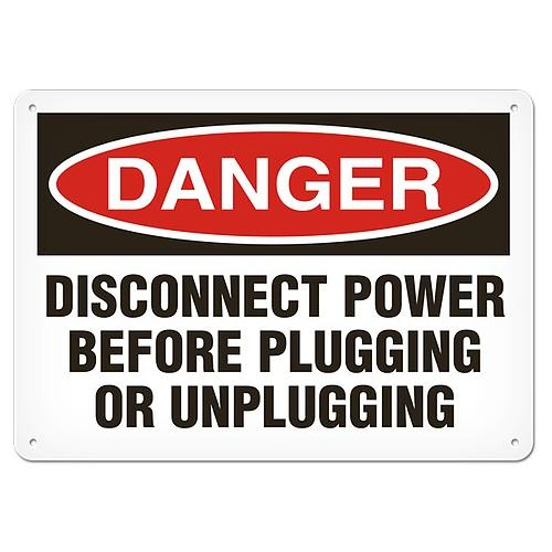 Incom, SC1105P, 14" x 20" Semi-Rigid Plastic Sign "Danger - Disconnect Power Before Plugging Or Unplugging"