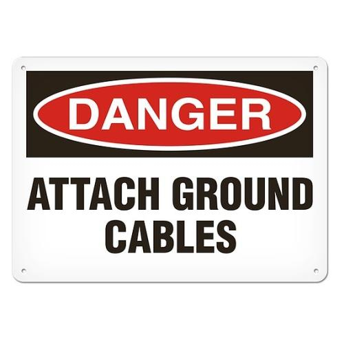 Incom, SC1146AL, Sign Danger "Attach Ground Cables", 14" x 20", Aluminum with UV Lamination
