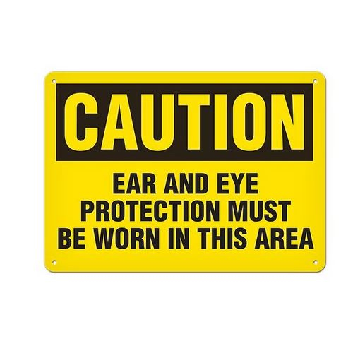 Incom, SC2065A, Caution Safety Sign "Ear And Eye Protection Must Be Worn In This Area" 14" x 20" Aluminum