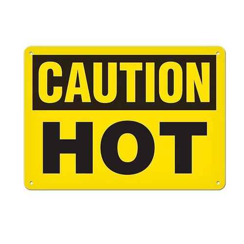 Incom, SC2072V, Caution Safety Sign "Hot" 14" x 20" Adhesive VynMark