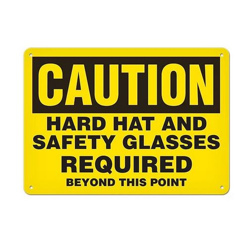 Incom, SC2079A, Caution Safety Sign: "Hard Hat And Safety Glasses Required Beyond This Point" 14" x 20" Aluminum