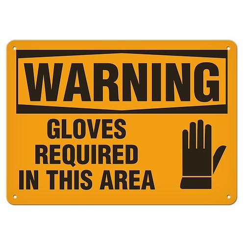 Incom, SC3018P, 14" x 20" Semi-Rigid Plastic Sign "Warning - Gloves Required In This Area"