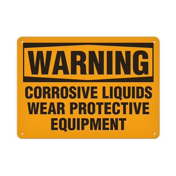 Incom, SC3022A, Sign "Warning - Corrosive Liquids Wear Protective Equipment", 14" x 20", Aluminum