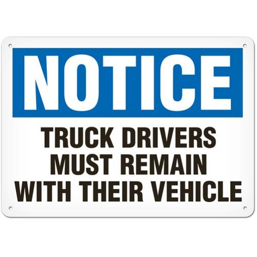Incom, SC4021AL, Sign "Notice - Truck Drivers Must Remain With Their Vehicle", 14" x 20", Aluminum with UV Lamination