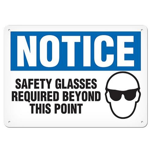 Incom, SC4050A, Sign "Notice - Safety Glasses Required Beyond This Point", 14" x 20", Aluminum
