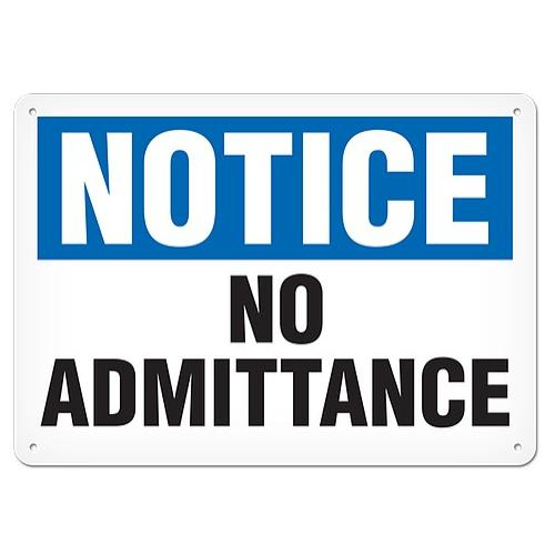 Incom SC4064V Sign "Notice - No Admittance" 14" x 20"