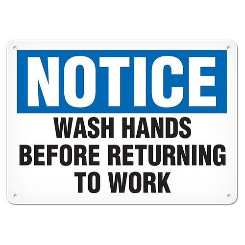 Incom, SC4067A, Sign "Notice - Wash Hands Before Returning to Work", 14" x 20", Aluminum