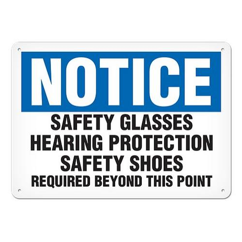 Incom, SC4069AL, Sign "Notice - Safety Glasses, Hearing Protection, Safety Shoes Required", 14" x 20", Aluminum with UV Lamination