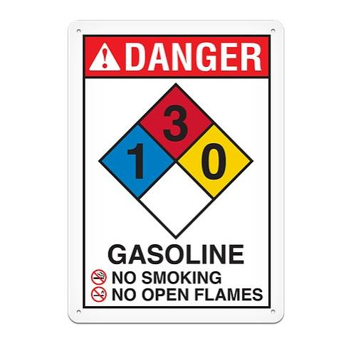 Sign Notice - "Danger Gasoline", Aluminum, 14" x 20"