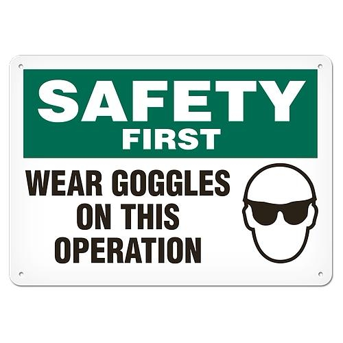 Incom, SC5007A, Safety First Sign "Wear Goggles On This Operation" 14" x 20" Aluminum