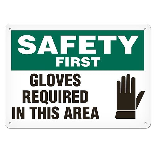 Incom, SC5012V, Safety First Sign "Gloves Required In This Area" 14" x 20" Adhesive Vinyl