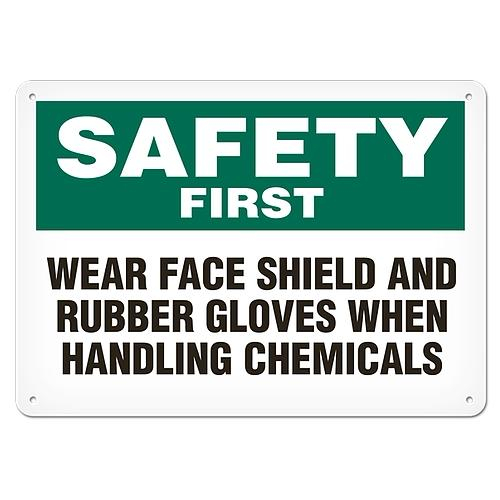 Incom, SC5017P, Safety First Sign "Wear Face Shield And Rubber Gloves When Handling Chemicals" 14" x 20" Semi-Rigid Plastic