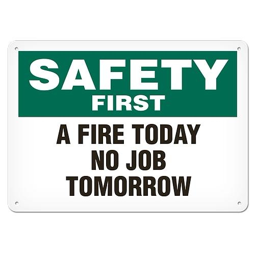 Incom, SC5020AL, Safety First Sign "A Fire Today No Job Tomorrow" 14" x 20" Aluminum with UV Lamination