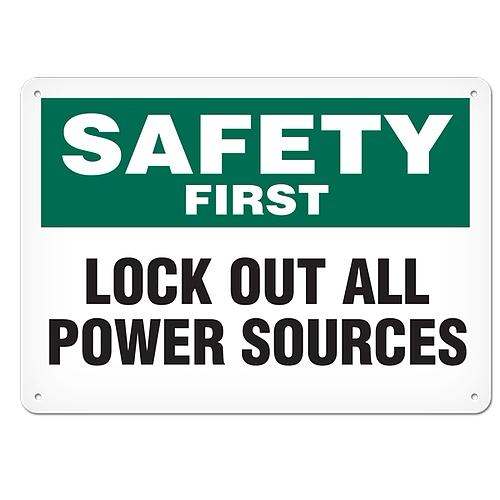 Incom, SC5025V, Safety First Sign "Lock Out All Power Sources" 14" x 20" Adhesive Vinyl